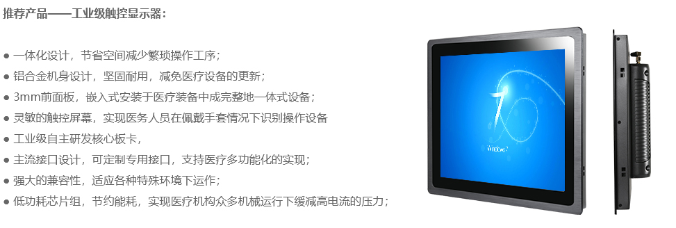 醫(yī)療衛(wèi)生關(guān)系著千千萬萬人民的健康生活,醫(yī)療行業(yè)的特殊性,常常遇到醫(yī)療機(jī)械設(shè)備,要求其應(yīng)用的觸控設(shè)備需具有操作簡(jiǎn)便精確,耐酒精消毒擦拭清洗,并需要支持佩戴手套可操作等特點(diǎn)。