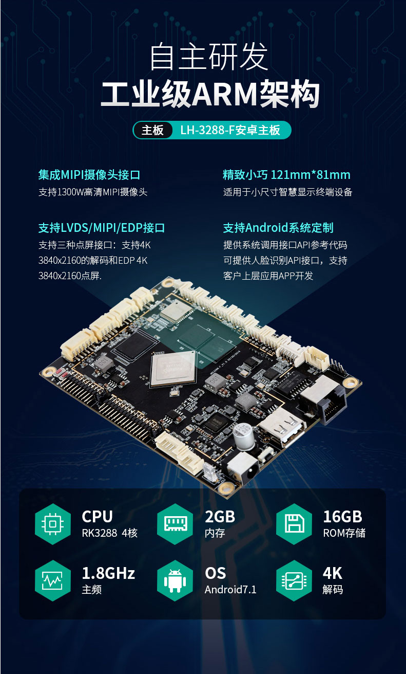 ·標(biāo)準(zhǔn)配置采用自主研發(fā)主板RK3288,運(yùn)行內(nèi)存和硬盤儲存分別為2G+ 16G,性能更穩(wěn)定,支持配置升級,滿足出入常見長時間運(yùn)行工作狀態(tài);