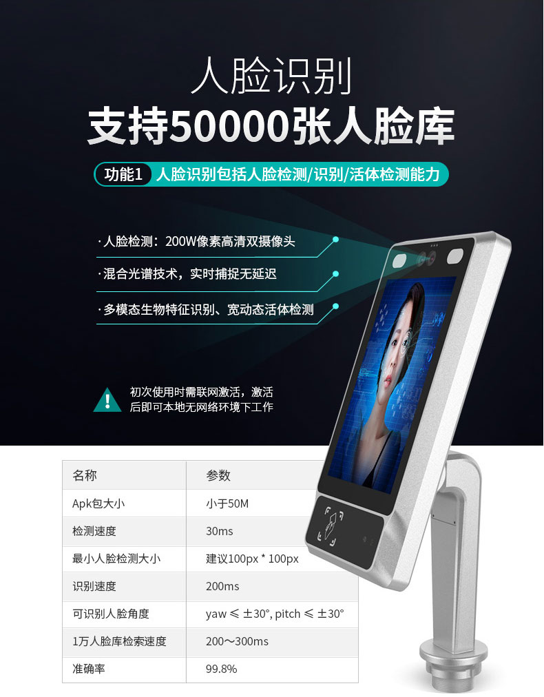 ·支持5萬張人臉庫,不僅可快速識別,還便于進(jìn)出健身房人員身份檢測,幫助健身房提升安全管理;