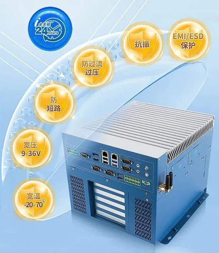 Z系列工控機(jī)遵循工業(yè)級設(shè)計(jì)標(biāo)準(zhǔn),支持寬溫(-20 - 70°C)、寬壓(DC 9-36V)運(yùn)行,通過過壓過流、防短路、抗振和EMI/ESD等保護(hù),全面保障產(chǎn)品安全可靠,適應(yīng)工業(yè)嚴(yán)苛環(huán)境。